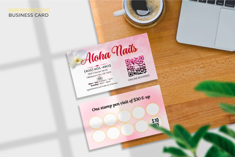 • Hỗ trợ marketing cho tiệm nail tại Mỹ: Sun Marketing không chỉ dừng lại ở việc in ấn mà còn hỗ trợ marketing, giúp tiệm nail tăng cường sự hiện diện và thu hút khách hàng tại thị trường Mỹ.